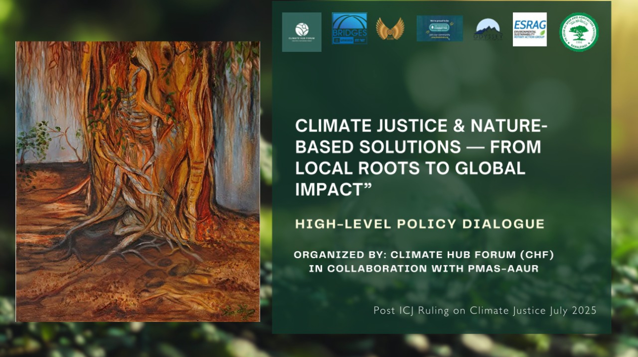 Following the landmark July 2025 International Court of Justice (ICJ) Advisory Opinion, the Climate Hub Forum (CHF) and PMAS-Arid Agriculture University Rawalpindi hosted a High-Level Policy Dialogue, on 4 August 2025. The subsequent report outlines a strategic roadmap for translating these new legal frameworks into practical sustainability science.