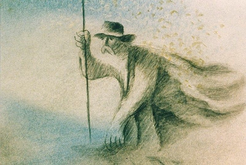 Figure 1: Elzeard Bouffier planting acorns