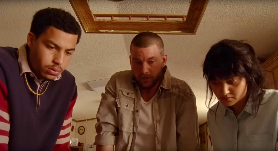 Figure 3: (left to right) Shawn (Marcus Scribner), Dwayne (Jake Weary), and Xochitl (Ariela Barer) making plans.